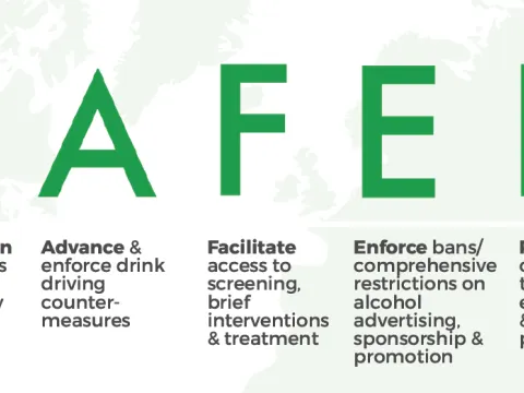 La OMS lanza SAFER, una iniciativa de control de alcohol para prevenir y reducir las muertes y discapacidades relacionadas con el alcohol.
